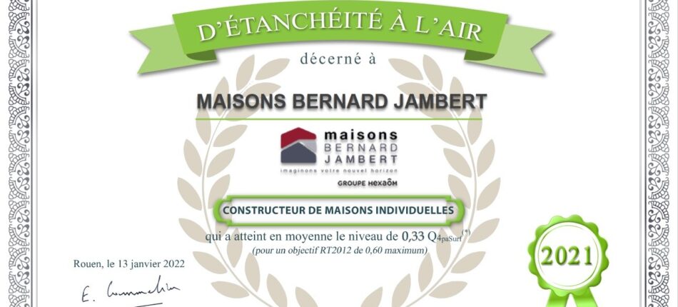 En 2021, la société BATIPERFORME leur décerne le diplôme d’étanchéité à l’air.