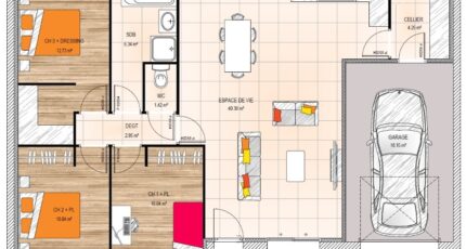 Plan maison 4 pièces 3 chambres Surface maison 80 à 88 m2