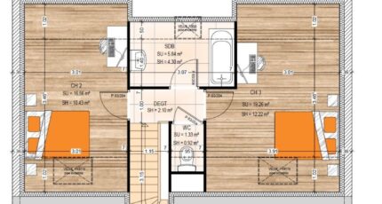 Plan maison 5 pièces 3 chambres Surface maison 87.22 m2