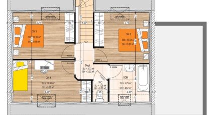 Plan maison 6 pièces 4 chambres Surface maison 97.66 m2