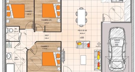Votre constructeur Bernard Jambert vous propose un projet de maison Plain-pied étudié et réalisé pour des investisseurs. Il est donc adapté aux PMR. Une Architecture traditionnelle pour cette maison de 84 m². Vous serez séduit par cet espace de vie lumineux ainsi que ses 3 chambres.
