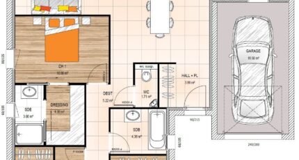 Imaginez votre maison sur mesure, belle conception offrant une pièce de vie de 45m², hall d'entrée, cuisine ouverte, cellier avec accès direct au garage. Agréable suite parentale avec dressing et salle d'eau privative, 2 autres chambres équipées de rangement et une salle de bain.