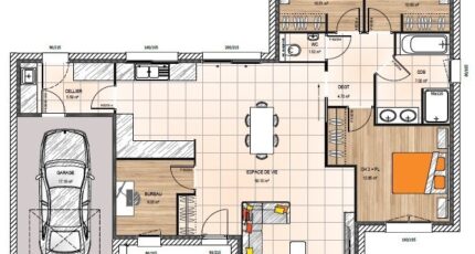 Imaginez cette maison de plain-pied et devenez propriétaire de ce bien. Vous y découvrirez au rez de chaussée un grand espace à vivre de 50m², un bureau, un cellier et un garage intégré. L'espace nuit quant à elle se compose de 3 chambres et d'une salle de bain toute équipée avec baignoire, douche et double vasque. Prestations de qualité garanties. Renseignez-vous pour votre étude.