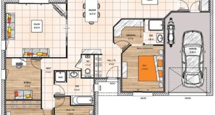 Plan maison 5 pièces 3 chambres Surface maison 130 à 140 m2