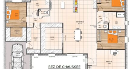 Plan maison 6 pièces 3 chambres Surface maison 150 à 160 m2