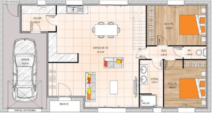 Plan maison 4 pièces 2 chambres Surface maison 81 à 100 m2