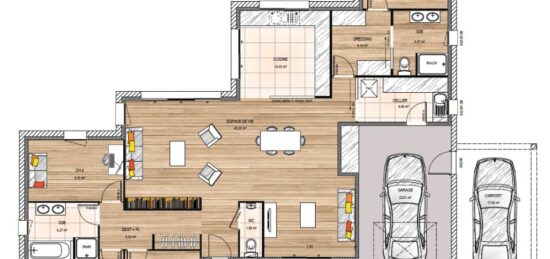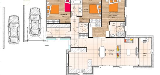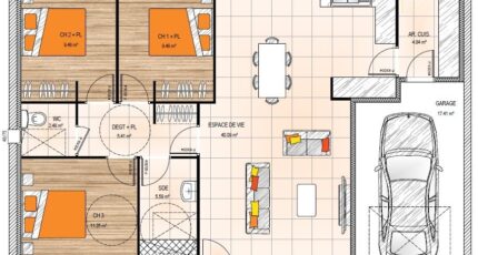 Plan maison 5 pièces 3 chambres Surface maison 85 à 90 m2