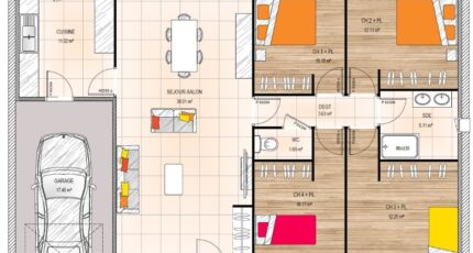 Plan maison 5 pièces 4 chambres Surface maison 100 à 110 m2