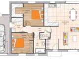 Plan maison 4 pièces 2 chambres Surface maison 80 à 90 m2