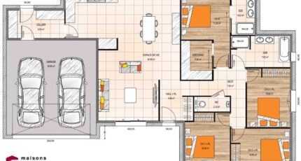 Faites construire votre maison de plain-pied de 127m² habitables comprenant un hall d'entrée qui dessert la pièce de vie de 45m² avec cuisine ouverte. Cellier attenant au double garage. Espace nuit comprenant 4 chambres dont une suite parentale avec salle d'eau privative et dressing attenant. Bénéficier d'une salle de bain familiale toute équipée. Prestations de qualité. Venez faire votre étude.