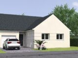 Un nouvel avant-projet de plain-pied en L pour s'adapter au terrain qui avait une façade réduite. Une surface habitable de 88 m² environ composée d'une entrée séparée avec placard, une pièce de vie principale d'environ 35 m² très lumineuse, un cellier donnant sur jardin et accès au garage de 17 m², trois chambres et une salle de bain bien équipée.