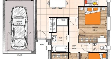 Plan maison 5 pièces 3 chambres Surface maison 88 à 100 m2