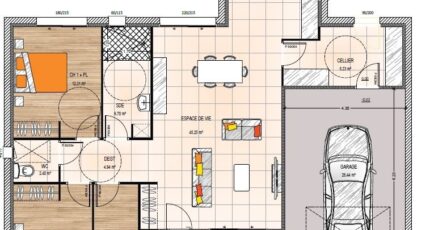 Un bel avant-projet confortable et adapté aux normes PMR. Il se compose d'une pièce de vie traversante de plus de 45 m² avec une cuisine semi ouverte, 2 chambres et un bureau. Pour le rangement, on appréciera le garage de 25 m².