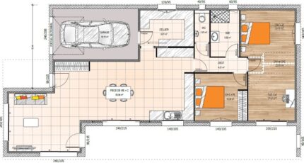 Plan maison 5 pièces 3 chambres Surface maison 102 à 103 m2