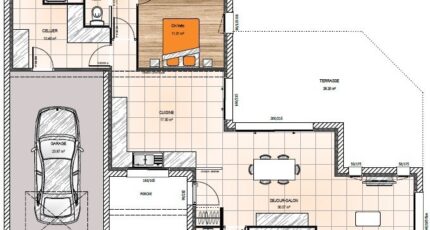 Plan maison 7 pièces 3 chambres Surface maison 132 à 133 m2