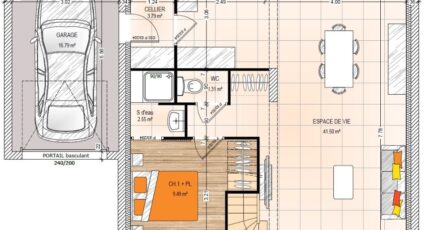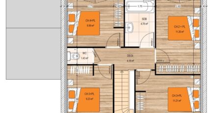 Ce projet Maison Bernard Jambert est fonctionnel et lumineux. Il dispose de nombreux avantages : au rez-de-chaussée, une pièce de vie de près spacieuse et baignée de lumière, un cellier accolé à la cuisine, une suite parentale et de nombreux rangements. Pour la partie nuit, à l'étage, un petit palier dessert une salle de bains avec baignoire et WC mais aussi 4 belles chambres. Cette maison répondra à tous vos besoins.