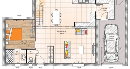 Plan maison 5 pièces 3 chambres Surface maison 120 à 125 m2