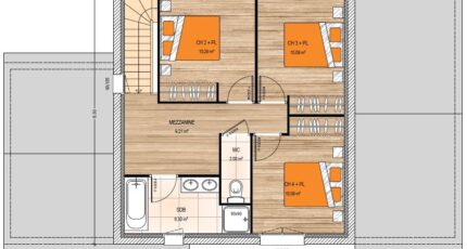 Belle maison à étage pour votre projet de construction. Cette réalisation comprend un bel espace de vie lumineux, une cuisine ouverte, un cellier, une partie parentale au rez de chaussée comprenant chambre et une salle d'eau équipée d'une douche à l'italienne. A l'étage, une grande mezzanine desservant 3 chambres et une salle de bain spacieuse pour toute la famille.