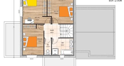 Plan maison 6 pièces 4 chambres Surface maison 125 m2