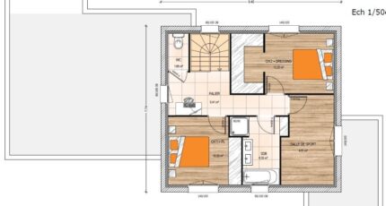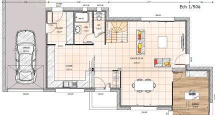 Plan maison 5 pièces 3 chambres Surface maison 130 à 135 m2