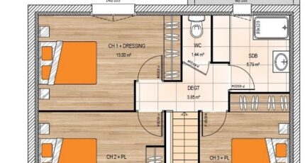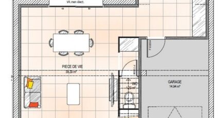 Votre constructeur Maisons Bernard JAMBERT vous propose un avant-projet réalisé pour un jeune couple. Maison à étage de 87 m² habitable avec une pièce de vie de 38 m² traversante donc très lumineuse, une cuisine ouverte pour plus de convivialité. Le côté nuit est organisé à l'étage autour de 3 chambres avec placards de rangement pour chacune d'entre elle et une salle de bain familiale. Une zone de rangement est également prévue avec le garage.