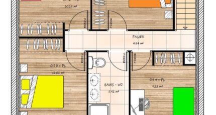 Plan maison 6 pièces 4 chambres Surface maison 94 à 95 m2
