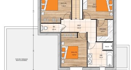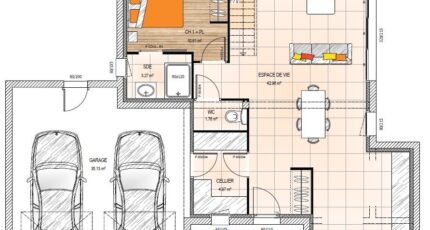 Plan maison 5 pièces 4 chambres Surface maison 115 à 120 m2