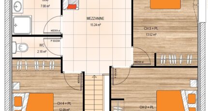Plan maison 6 pièces 4 chambres Surface maison 130 m2