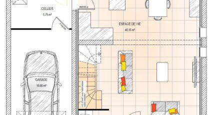 Votre constructeur Maisons Bernard JAMBERT vous propose un avant-projet au style contemporain. Cette maison à toit mono pente de 95 m² habitable se compose d'une pièce de vie de 48 m² traversante avec une cuisine donnant sur le jardin et terrasse. Vous serez séduit par la luminosité et les espaces. Le côté nuit est organisé à l'étage autour de 3 chambres d'environ 11 m² dont une avec dressing, une salle de bain. Une zone de rangement est également prévue avec un cellier et un garage.