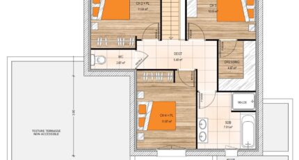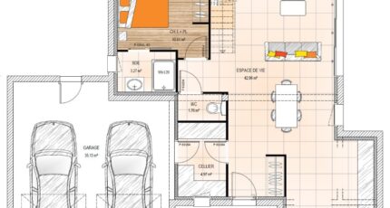 Un bel avant projet de maison en étage complet et toit mono pente. Cette maison se compose d'une entrée, un espace de vie de 43 m² spacieux et lumineux, 1 chambre avec sa salle d'eau attenante, un garage double de 35 m². L'étage dédié aux enfants est composé de 3 chambres de blelles surfaces, une salle de bain et une petite mezzanine.