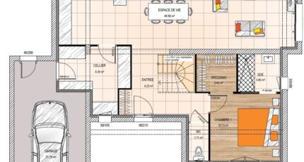Une réalisation signée Maisons Bernard JAmbert La Roseraie - Vous serez séduit par la pièce de vie offrant un très beau volume et une belle luminosité, cuisine ouverte sur le salon-séjour avec un cellier attenant au garage, une salle d'eauet un dressing pour la suite parentale. A l'étage une mezzanine/bureau dessert trois chambres et une salle de bain spacieuse pour toute la famille.