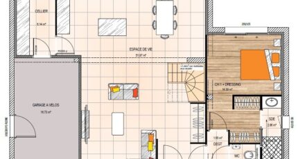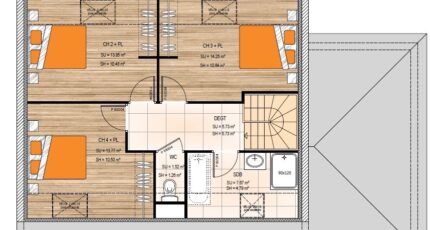 Plan maison 5 pièces 4 chambres Surface maison 120 à 135 m2