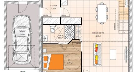 Votre maison Bernard Jambert vous offre les toutes dernières innovations pour votre projet de construction sur mesure. Architecture traditionnelle pour cette maison de 95 m² faite pour un investisseur aux normes PMR. Espace de vie traversant et lumineux de 38 m², cuisine ouverte, 1 chambre avec sde, buanderie donnant sur garage. A l'étage 2 grandes chambres et leur salle de bain privative pour chacune.