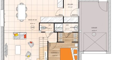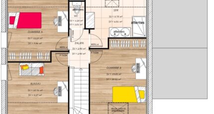 Plan maison 6 pièces 4 chambres Surface maison 96 m2