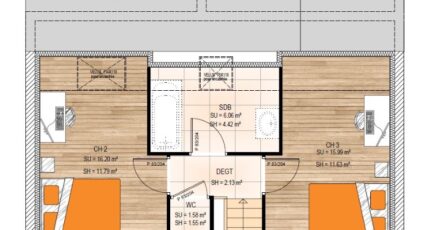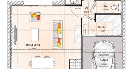 Votre constructeur Maisons Bernard JAMBERT vous propose un avant-projet réalisé pour un couple de jeunes parents. Cette maison en combles aménagés de 86 m² habitable, au style traditionnel, se compose d'une pièce de vie de 35 m² traversante avec une cuisine ouverte en façade avant. Vous serez séduit par la suite parentale au rdc donnant sur jardin. Le côté nuit est organisé à l'étage autour de 2 chambres d'environ 11 m², une salle de bain. Une zone de rangement est également prévue avec un cellier et un garage.